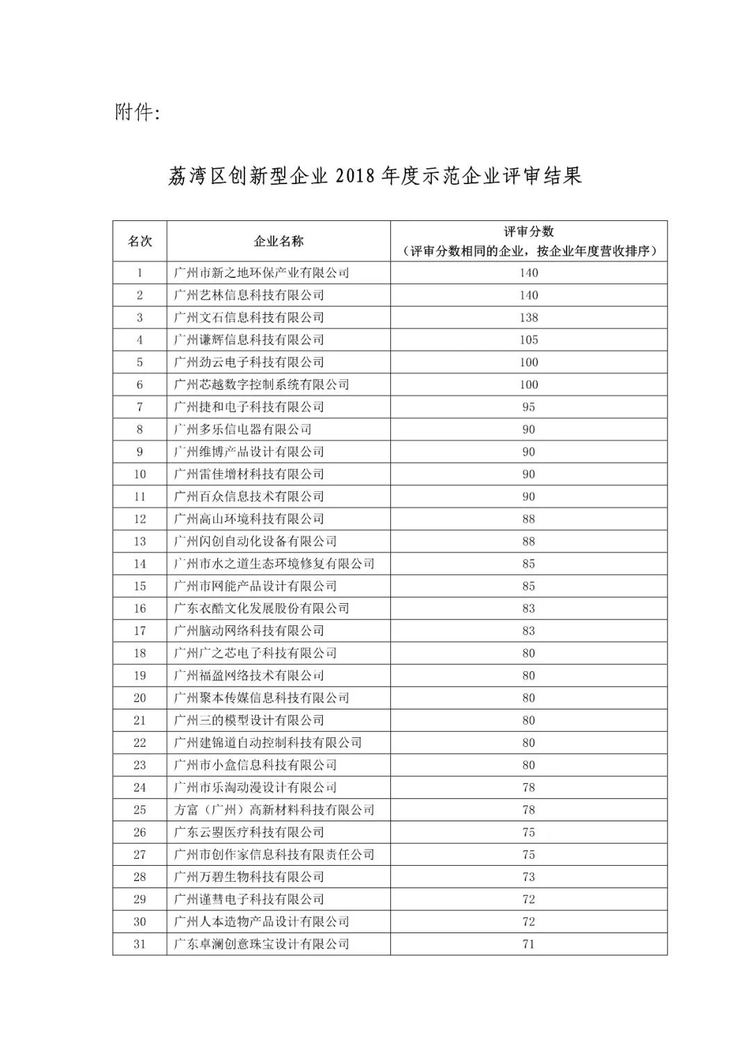 关于荔湾区创新型企业2018年度示范企业评审结果的公示