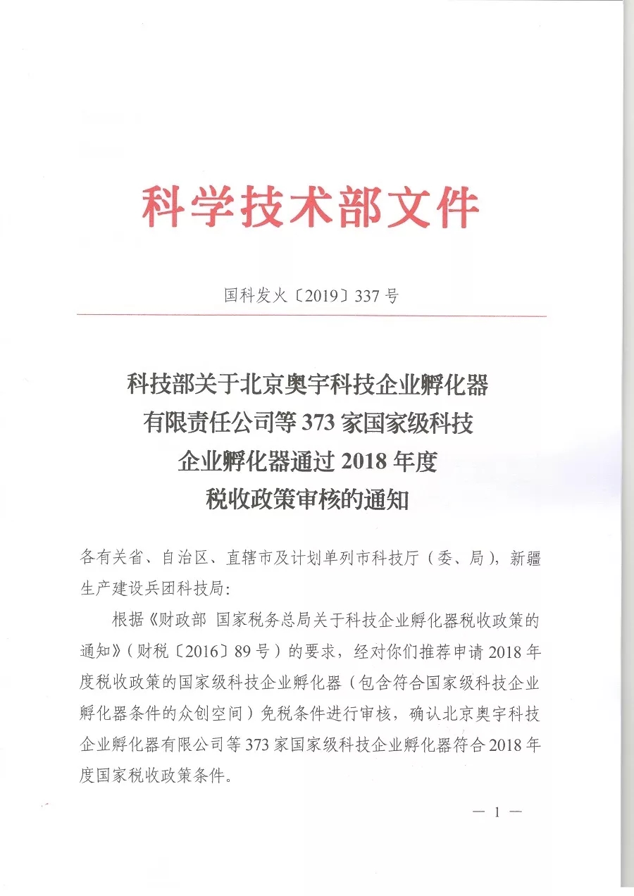 园区通过2018年度国家级科技企业孵化器税收政策审核