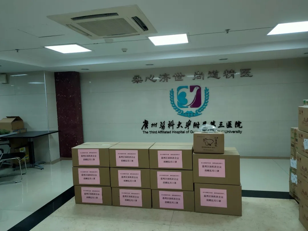 在得到广州医科大学附属第三医院缺少医疗物资这一消息,广州捷和立即行动起来,在这口罩供应不足的时期里,筹集到了医用外科口罩2000个,一次性医用口罩2410个。一拿到这些医用物资马不停蹄的便捐赠给广州医科大学附属第三医院。