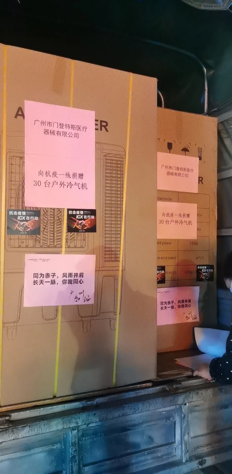 受疫情影响,近日荔湾区疫情突发严重,园区企业门登特斯公司捐赠30台户外冷气机给广州市荔湾区市场监督管理局、荔湾区卫生局等机构,为一线抗疫工作者提供微薄之力。