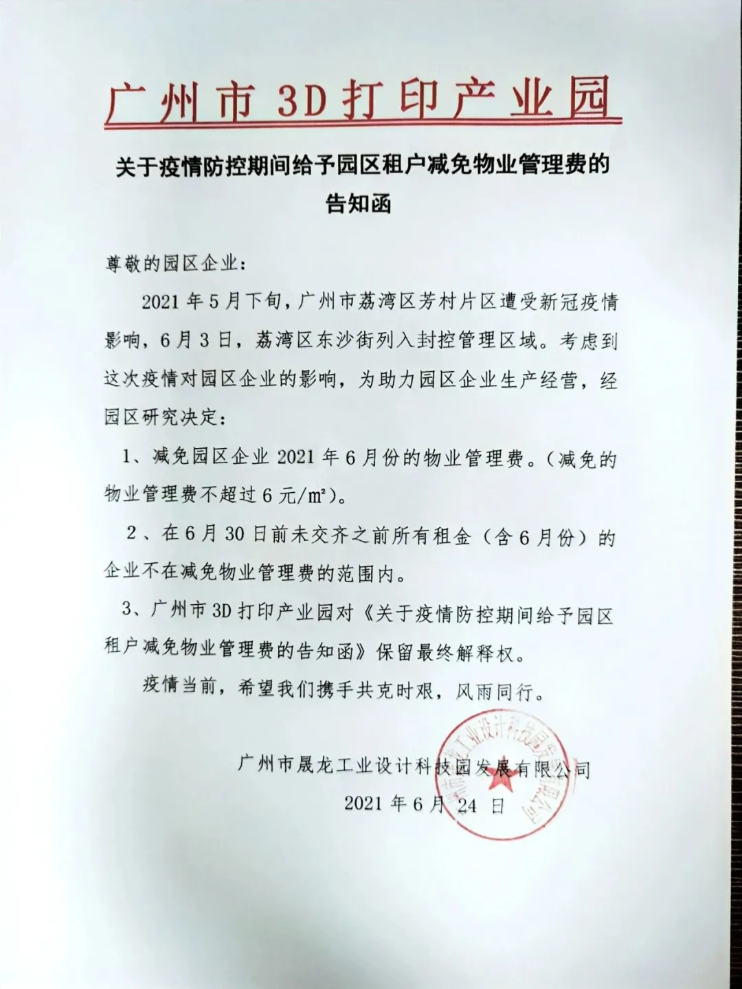 另外,园区考虑到此次疫情对园区企业带来的经营压力,决定采取减免租户6月份物业管理费的扶持措施。并积极为企业调配各类防疫物资,减轻疫情对企业日常经营造成的影响,力争为企业及员工提供安全安心的办公环境,与园区企业共抗疫情、共渡难关。