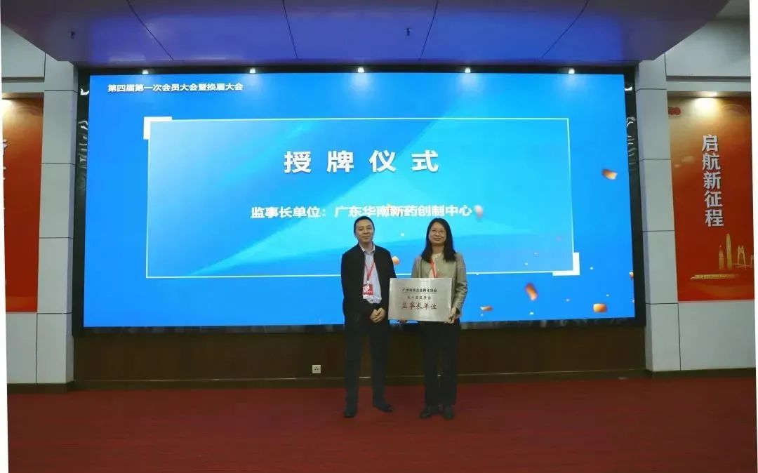 第三阶段为会员大会复会,监票人公布了得票情况后,先由新当选陈愚会长讲话,再由广州市科学技术局翟尧杰科长做总结报告,最后是会长、副会长和监事长单位的授牌仪式。