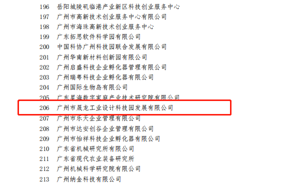 12月13日,科技部火炬中心发布的《科技部火炬中心关于公布国家级科技企业孵化器2020年度评价结果的通知》,全国参评的1287个国家级科技企业孵化器中258家被评为优秀(A类),广州市晟龙工业设计科技园发展有限公司孵化器(广州市3D打印产业园)位列其中,祝贺园区连续三年被评为国家级科技企业孵化器A级!