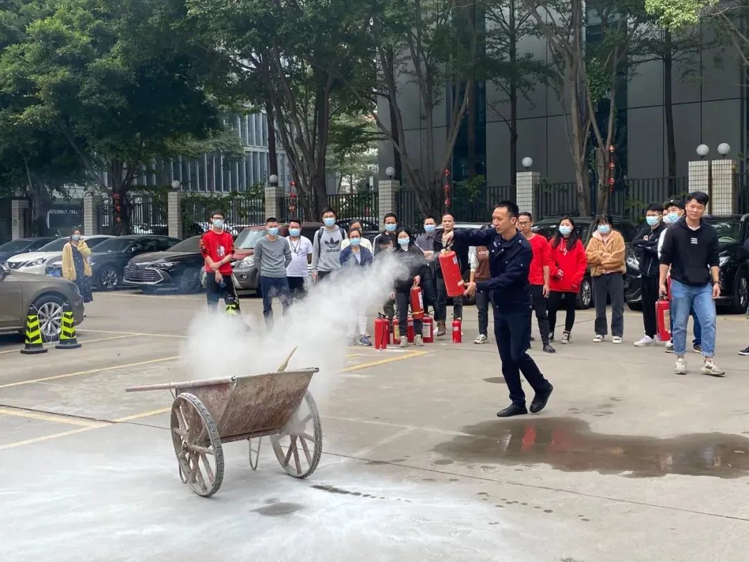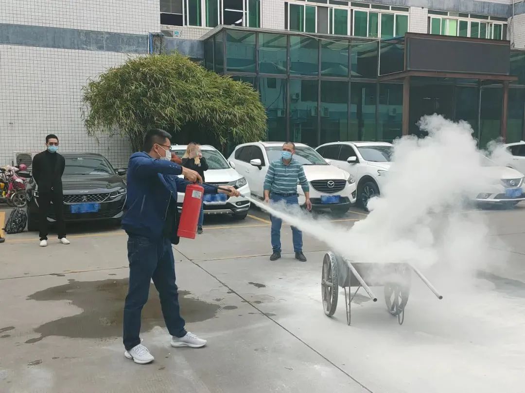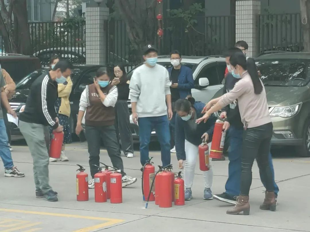 随后,大家在园区广场进行了实地消防演练,金教官手把手教导大家如何使用灭火器扑灭火焰,同时讲解了相关注意事项。演练紧张有序地进行,并取得圆满成功。