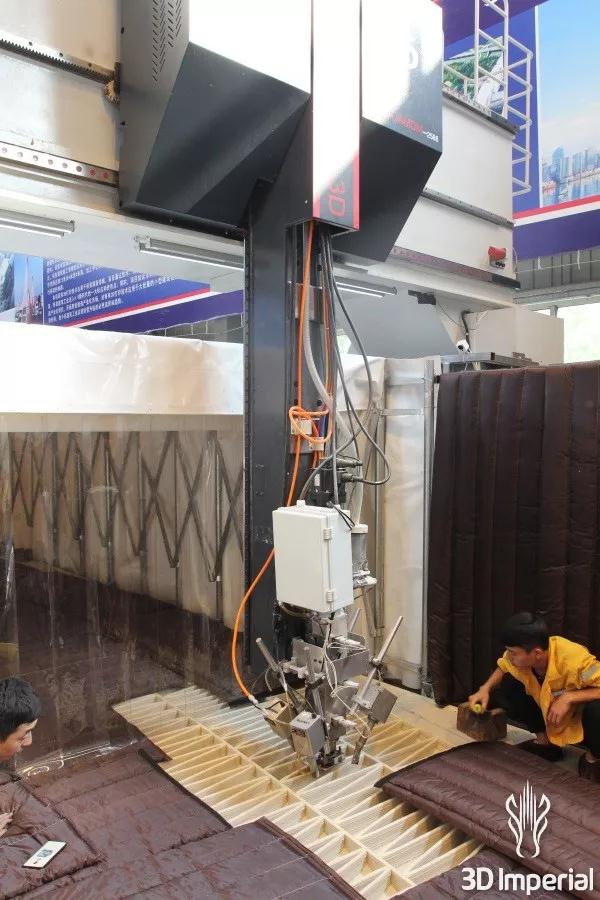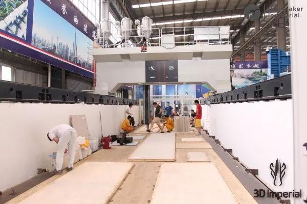 ·建造室长24米,宽4米,高1.5米,工作人员在3D打印机内部工作;