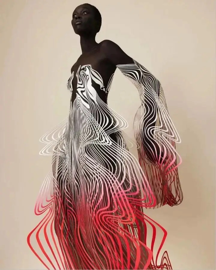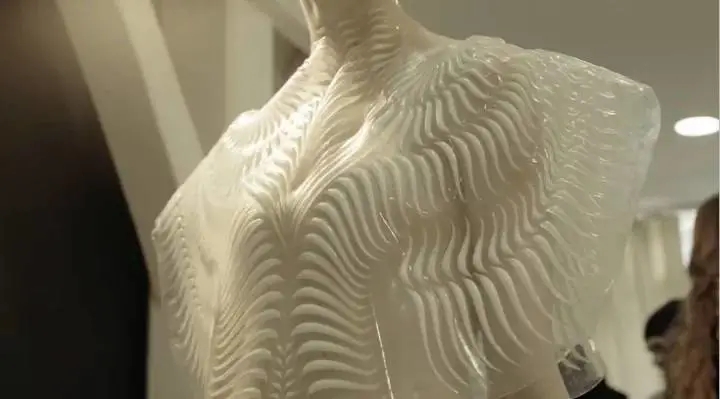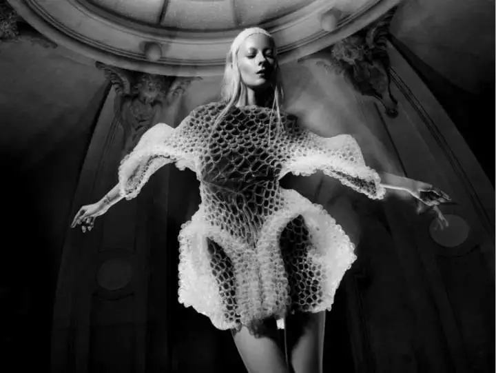 Iris : “3D打印的衣服已经能跟随身体而运动,女孩们能穿着来跳舞。至少,你能把3D打印的衣服扔到洗衣机里去洗了。你也可以坐在上面,一点儿也不扎人。3D打印能赋予服装更加准确的色彩,而无需后续染色,这都是非常大的飞跃”。我们可以通过Iris van Herpen的解释,知道3D打印技术对于服装制作的优势之处,也了解了现在3D打印服装的发展,对于进入人们生活,实用成衣化的发展。相信科技能够改变生活,提升工艺技术。