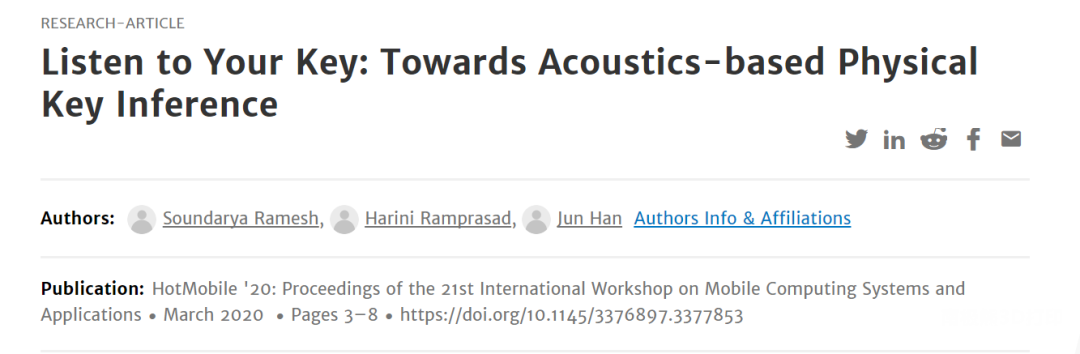 更多关于这项研究的信息可以在题为 “Listen to your key: Towards acoustic-based physical key inference” 的论文,发表在AMC Digital Library。该论文由S. Ramesh、H. Ramprasad和J. Han共同撰写。