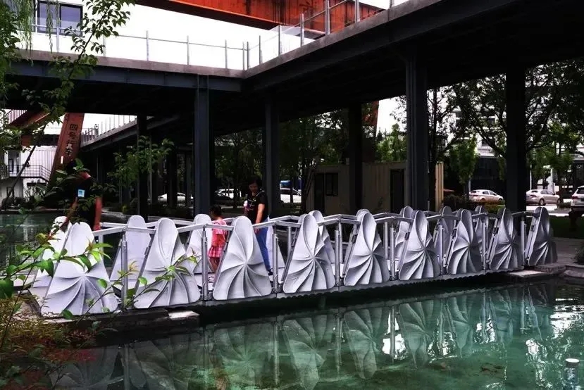这座3D打印的伸缩桥设计灵感来源于齐白石先生的一幅作品。除艺术性外,它能承载比自身更重的重量,走在上面感觉很结实。